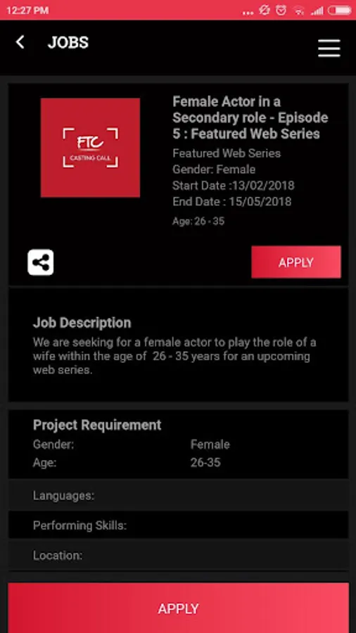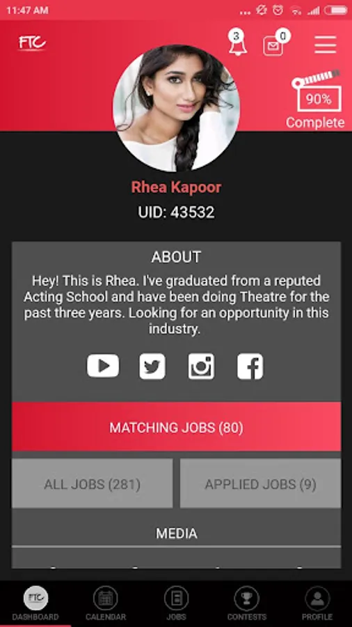 The portal & app allows you to create an online profile and an online portfolio, it also allows you to submit online job applications, and give online auditions. You can even participate in various online contests and acting workshops organized by FTC Talent. FTC Talent app opens the door to a plethora of opportunities in the Media & Entertainment Industry all in the comfort of your home. As Talent, you can manage your acting/audition calendar on your personal dashboard. Also, keep an eye on the Blogs/Vlogs related to Jobs, FTC News, Fitness tips, Acting tips, Beauty tips, Bollywood gossip, and much more. Now Stardom is available at your fingertips.