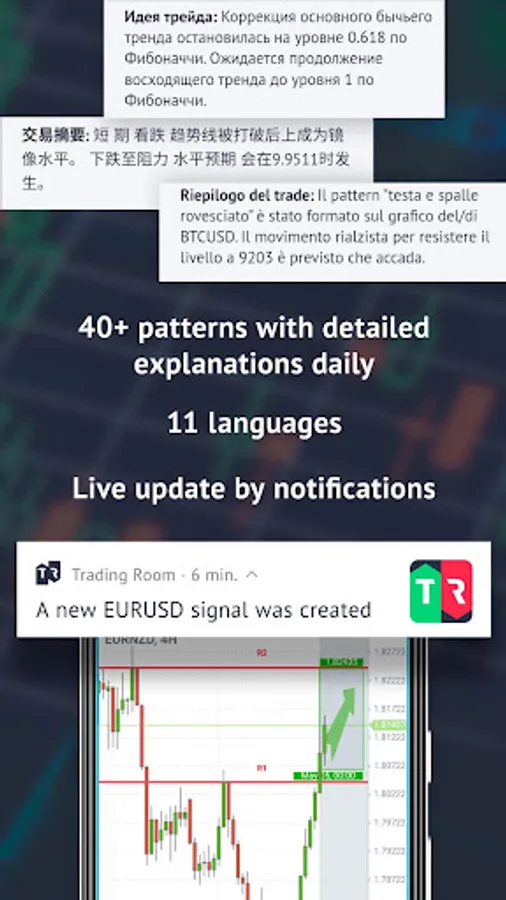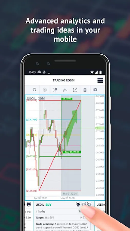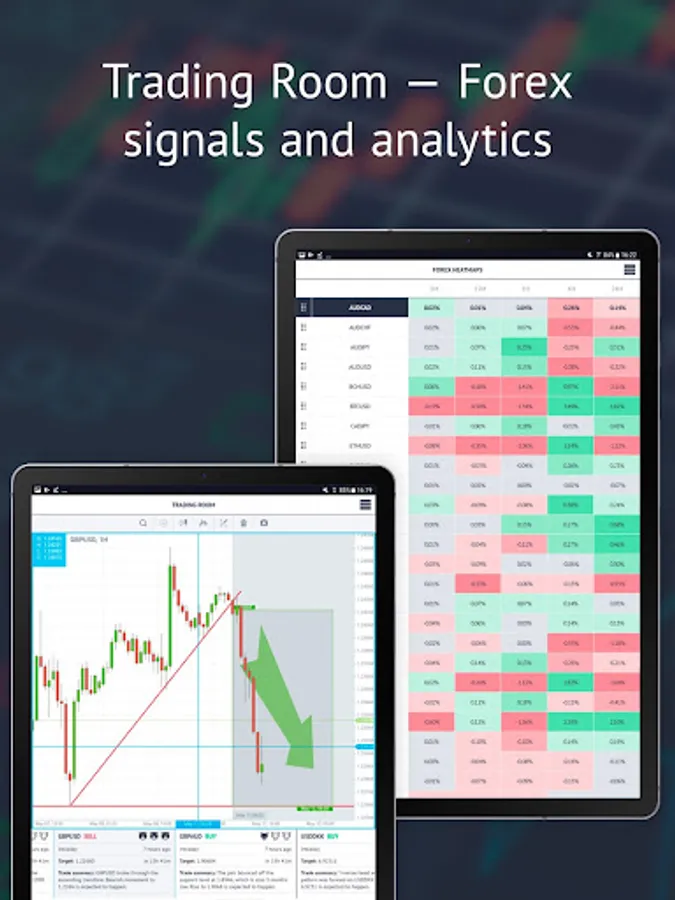 Trading Room is a forex signals and trading analytics application, that will provide you advanced information, analysis and ideas for trading. Team of professional traders is publishing more than 40 daily signals/ideas for trade, based on the hottest market trends and technical analysis patterns. Every idea is presented on candlestick chart, so you can immediately track live its development/potential.