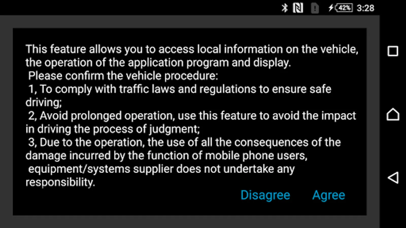 This application is for HDMI connection. You may project your Android smartphone’s screen onto the car multi-media system by HDMI connection and use this application for bi-directional control via touch screen of car multi-media.