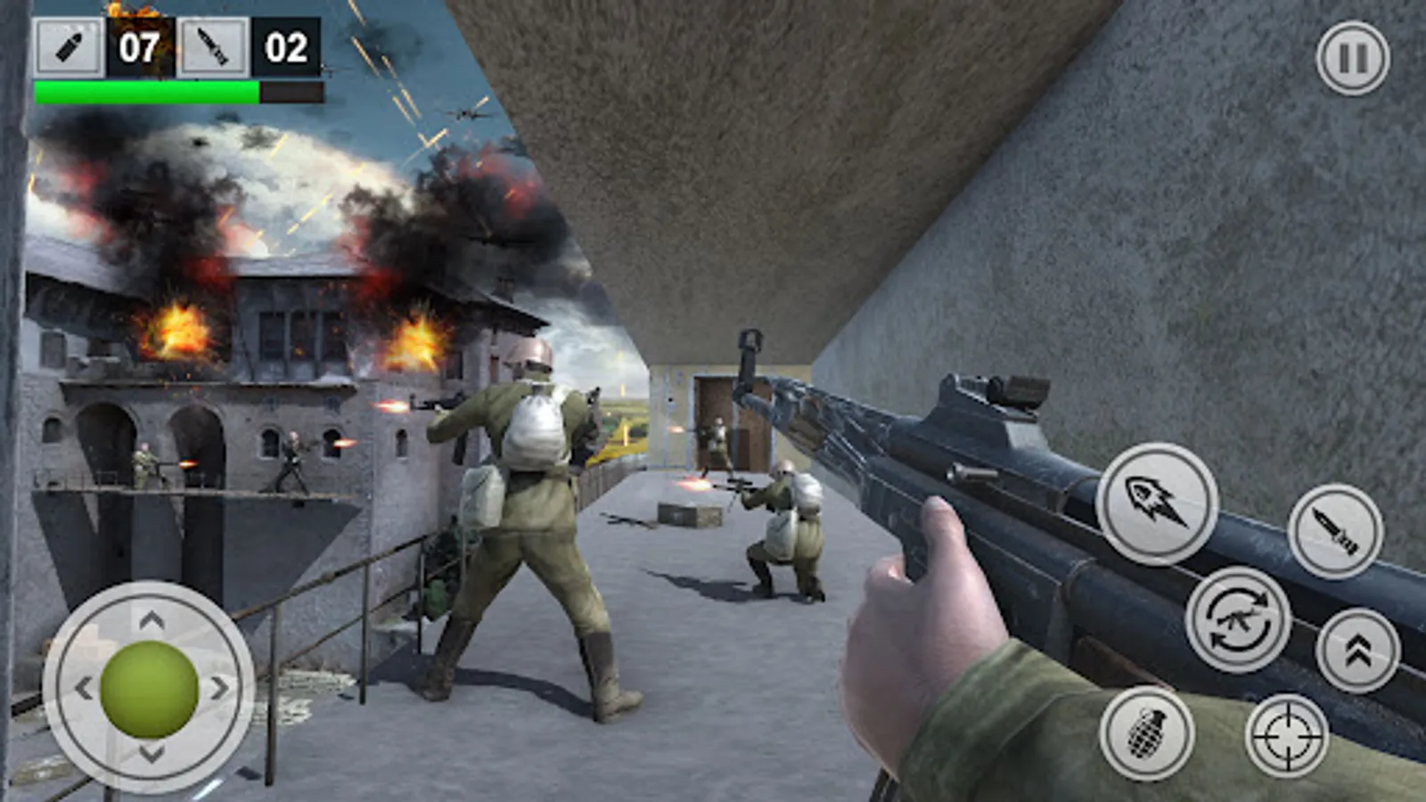 Eliminate enemy sniper in the tower, destroy enemy tanks, clear minefield the thrill never ends in this amazing world war 2 shooting game. Search area behind enemy lines and locate prisoner of war, use guerrilla war strategy in this ww2 fps shooting game. Play intense ww2 first-person shooting games. Hide as ghost in plain sights and destroy enemy antiaircraft cannons, plant explosives and use a rocket launcher to destroy base camp in this ww2 combat game. Face intense battle moment on the frontier in this world war 2 first-person shooter game. Survive as a lone wolf and engage your commando survival tactics in ww2 fps shooting game.