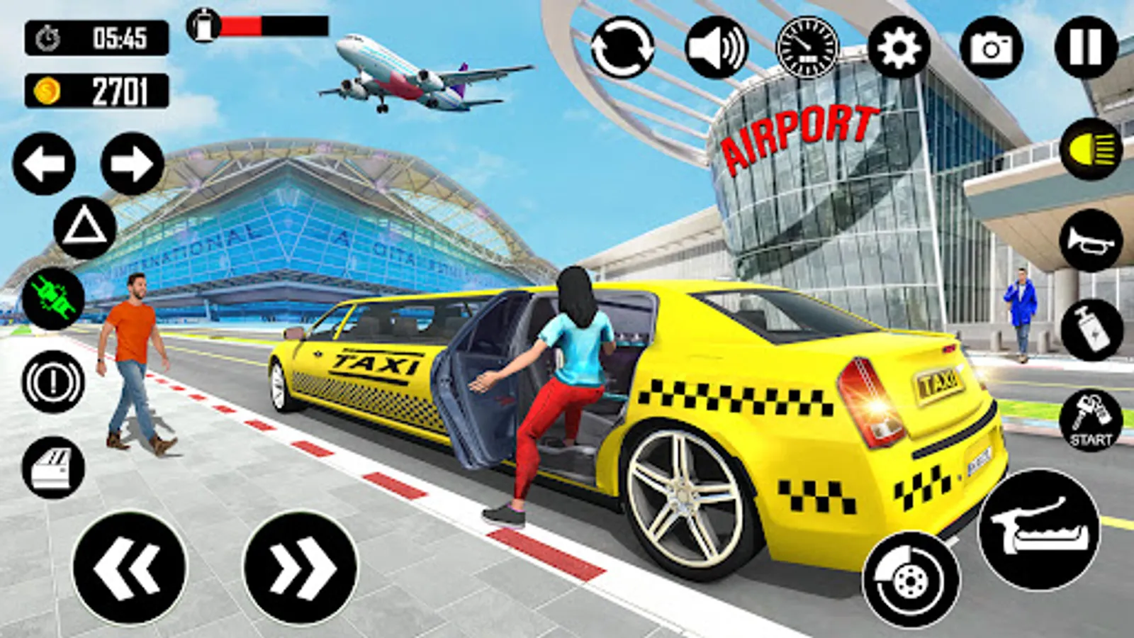 The flying mode of Taxi Games: Driving School 3D in which you can not only drive your limousine car but also fly it like an airplane in this taxi simulator game 2023. Enjoy driving real taxi car games and fly high in the sky above the city skyscrapers. Explore the open world environment with flying car taxi games 2023. If you love playing airport simulators and want real pilot flight simulation games then you will love this flying car taxi driving games for free. Pick and drop the passengers in an open world environment in this real taxi games 2023. Enjoy the coolest flying car game above the buildings and skyscrapers in this epic taxi driver games online.