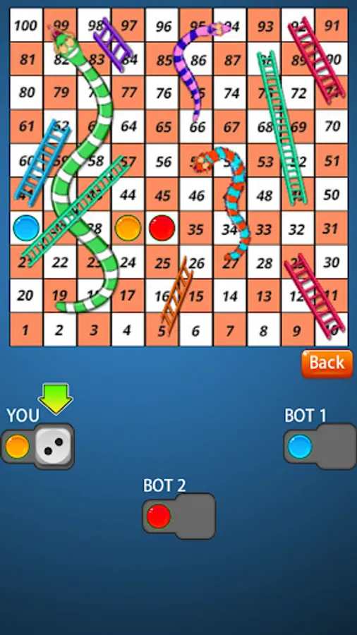SNAKE AND LADDER is a classic indian board game. It is played between 2 to 4 players on a board having 1 to 100 number on square grid. A number of ladders & snakes are pictured on the board, each connecting two specific number. You have to roll the dice and start from 1 and reached to 100 to finish the game. Who reached the final square (100) will win the game.