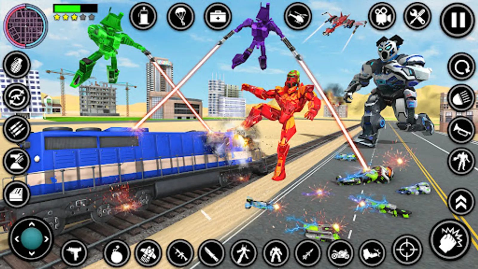 You can play car transforming games 2022 or use police panda robot game to shoot futuristic weapons at the enemy war robots and flying car robot in this action-packed panda robot car transform game. Enjoy this multi-robot transformation game where a flying panda robot hero is authorized to battle alien spaceships and robots. Enjoy an adventure-filled robot car transform experience in this fun multi-robot transformation game for 2022. Maintain law in the city as police officers patrol highway streets drive police cars. Look out for the alien robot army invading earth and attacking our grand city.
