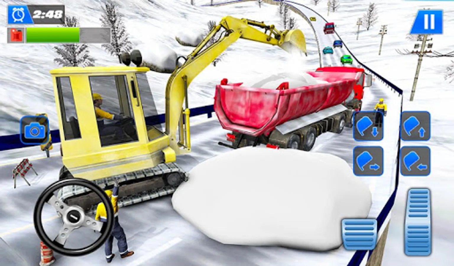 Best road builder games in winter city snowfall environment with sand excavator crane and dump trucks