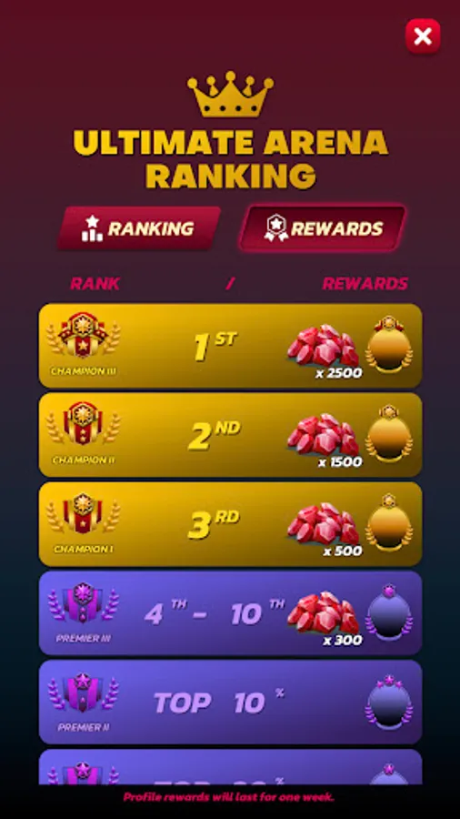 Earn the most honorable trophy by getting the highest Tournament Ranking!
