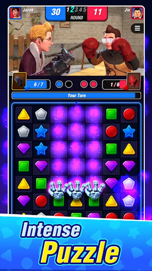 Experience the intense power of Boxing Star in Match 3 puzzle play with taps and swipes.