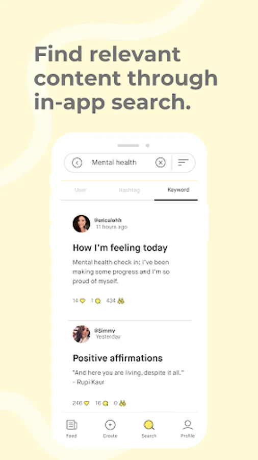 - Find topics and content with our in-app search function that enables you to search for users, hashtags, or keywords.