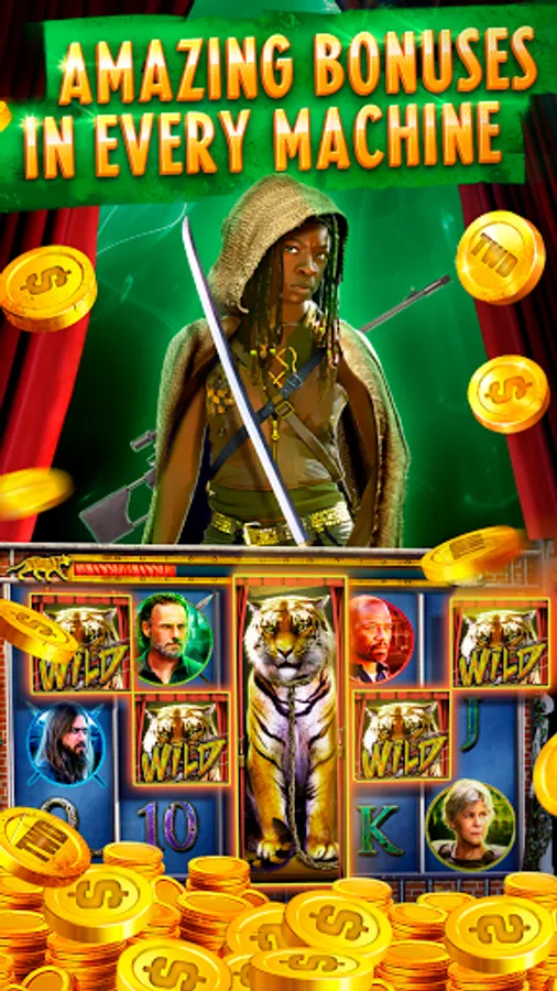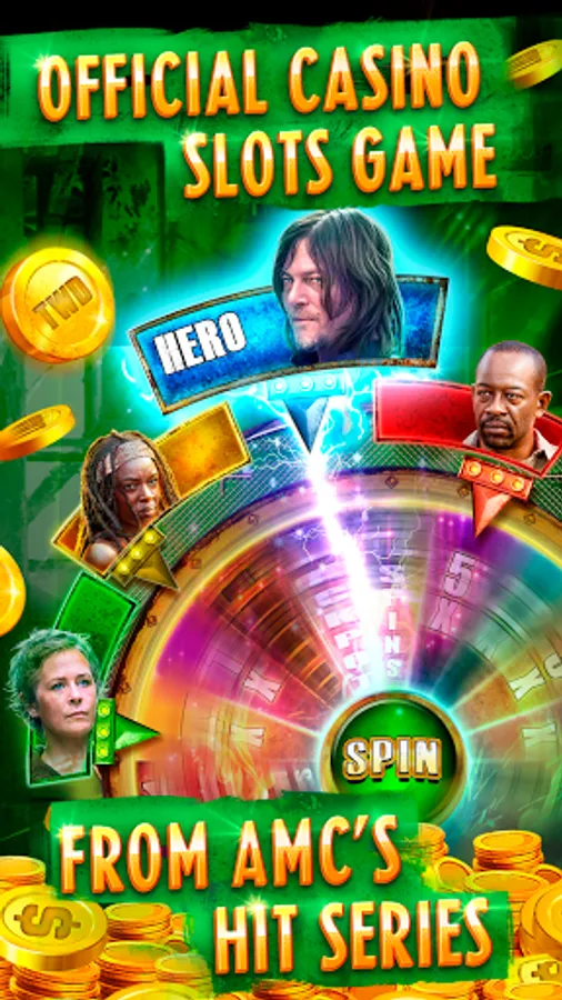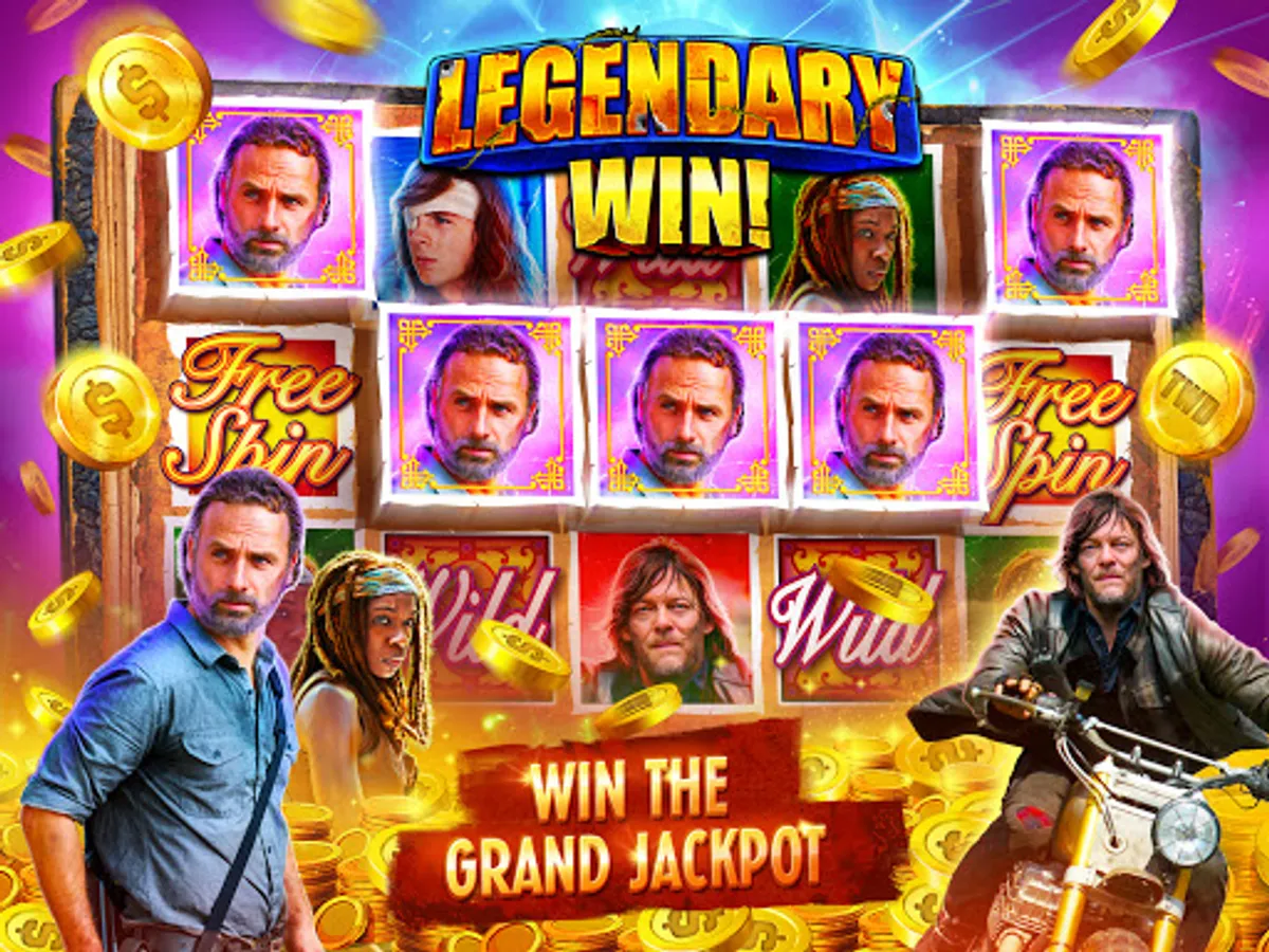 Grab your survival tools and suit up for battle alongside legendary survivors from AMC’s The Walking Dead in this official mobile slots game. The Walking Dead: Casino Slots will throw you headlong into an immersive, post-apocalyptic world with deep gameplay and stunning graphics. Your objective is to win all of the money… and survive long enough to spend it!