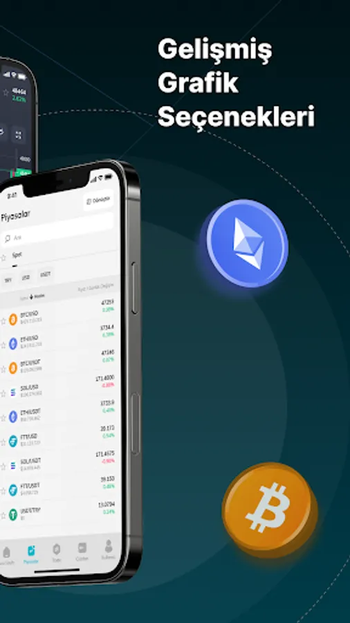 Android ve Ios üzerinden tüm kripto paraların fiyatlarını grafikler üzerinde analiz edin,