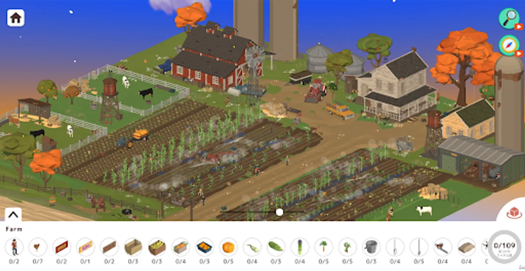 The goal of "Collectown" is to find and collect all of the items hidden in the various maps. The items are cleverly hidden and require a high level of observation and concentration to find them all. Some items are difficult to find, but with the help of a magnifying glass and compass, you will have no problem finding them.
