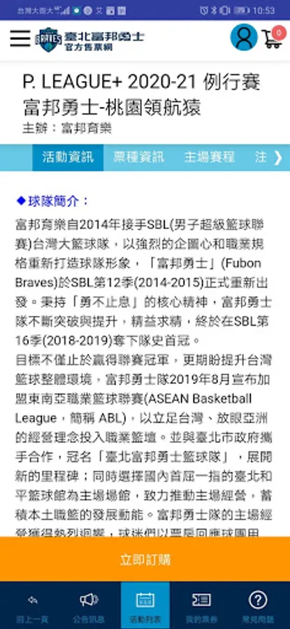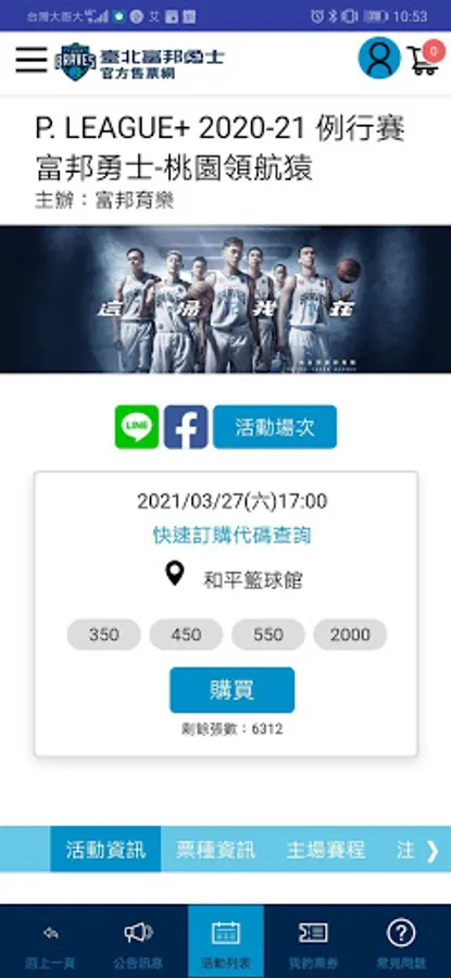 The official ticketing platform of the Taipei Fubon Warriors basketball team sells various tickets for the Fubon Warriors basketball team events, providing consumers with a convenient and complete ticket purchase channel, allowing fans to introduce mobile electronic ticketing services, from ticket purchase and collection Tickets, donation, and ticket inspection are all paperless services. With the change of entertainment lifestyle, Taipei Fubon Warriors basketball has established a forward-looking approach. "Fubon Warriors Ticketing Network" has become the first website in Taiwan that sells electronic tickets for basketball events. In 2020, we will provide fans with the most considerate ticket sales service, allowing consumers to enjoy a convenient ticket buying environment with one-time satisfaction.