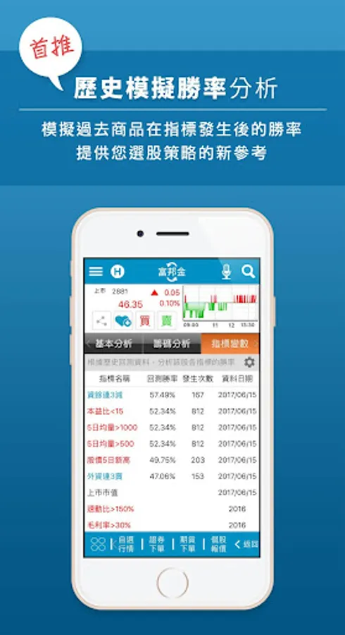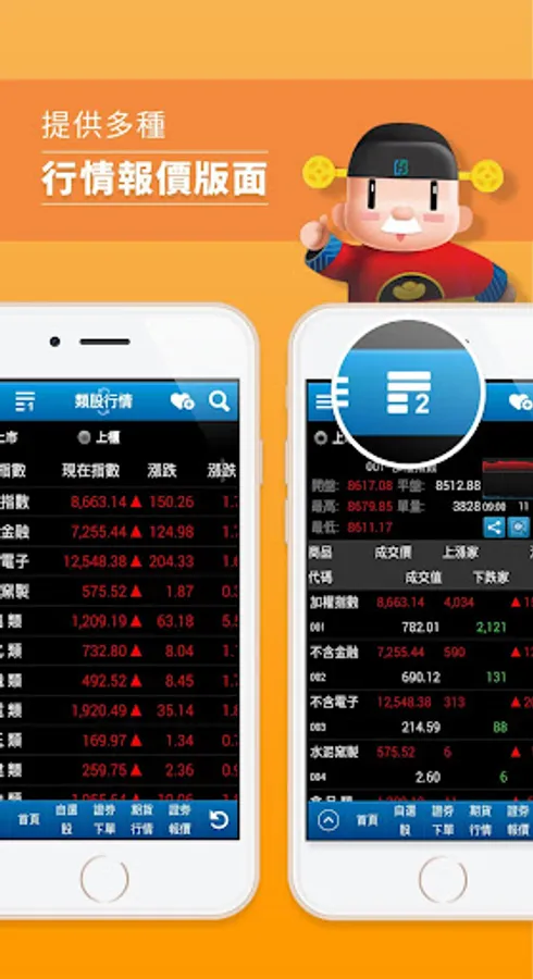 Fubon Securities and Fubon Futures provide Android Phone version of the exclusive stock watching software [Fubon e+]. This service provides diversified quotation information, allowing you to view the latest and most real-time quotation information with the most convenient operation.