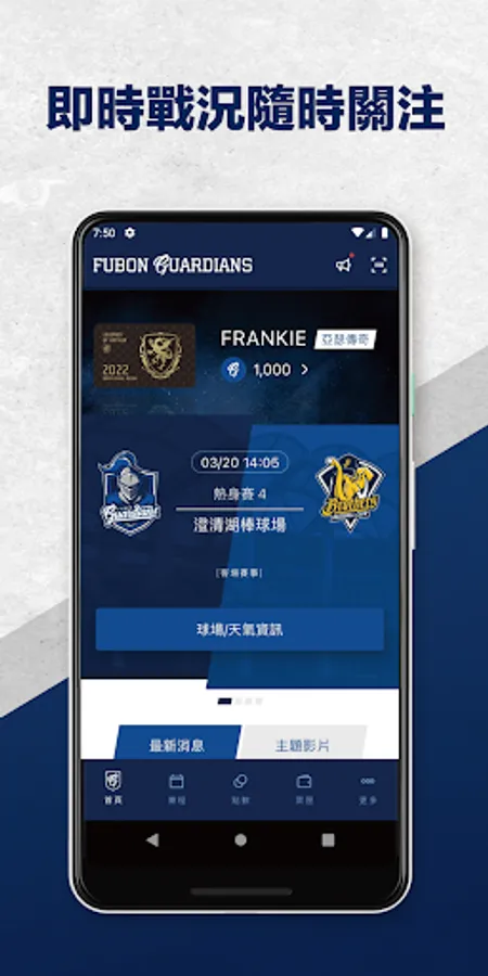 The Fubon Titans APP is fully updated, providing real-time battle conditions, news video, stadium weather, traffic navigation, 360-degree panoramic seat selection, electronic ticket box, member barcode, message push, and new Fubon Titans collection tasks. Go to the stadium to watch the game to collect points, and have the opportunity to get players' actual jerseys, player's signature balls and other fantastic items!