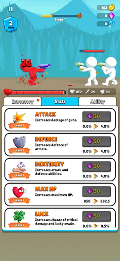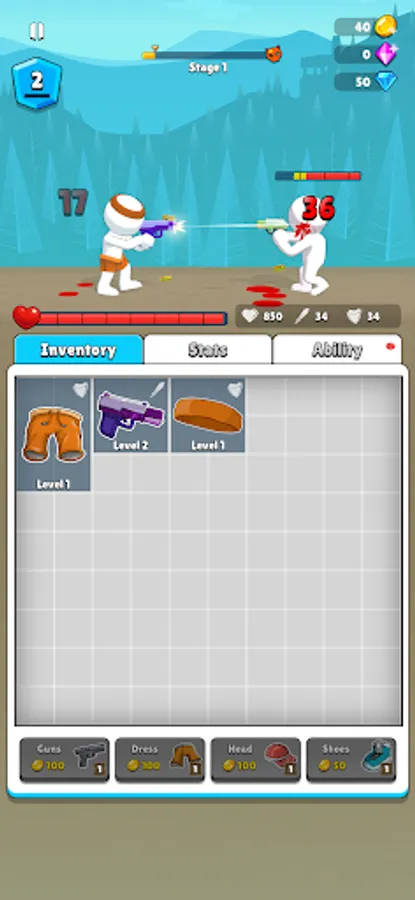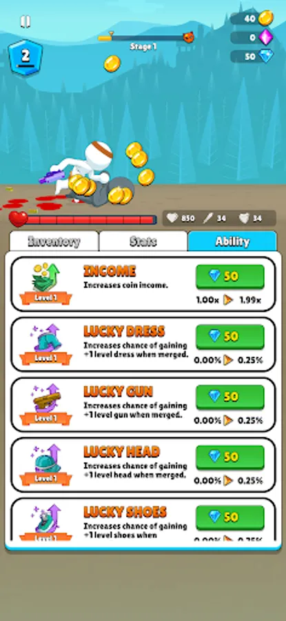 Kill the enemy, earn money, buy items, combine the items you bought, increase their level, use statistics, upgrade abilities, kill the enemy faster and win the game!