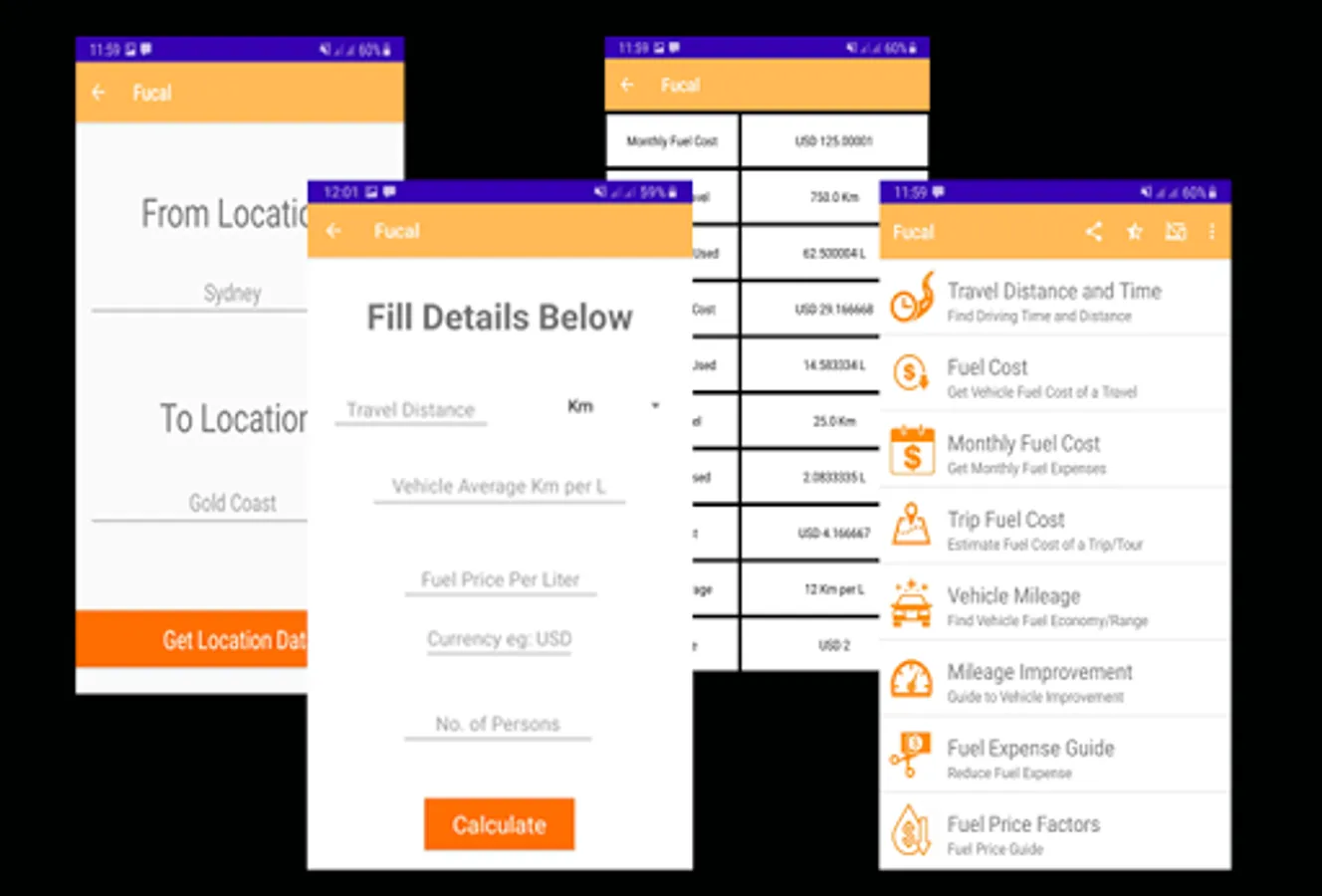 This is fuel calculation app. You can easily calculate cost to travel to a distance, monthly fuel costs, weekly fuel costs, daily fuel costs, Tour Fuel Cost and More. You also can quickly calculate distance between two places using this app.