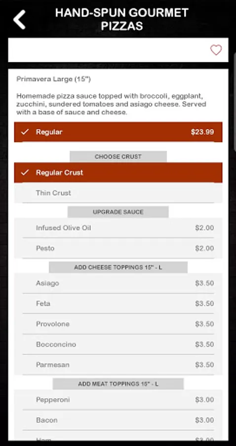 - Access our complete menu (items, prices, photos, descriptions)