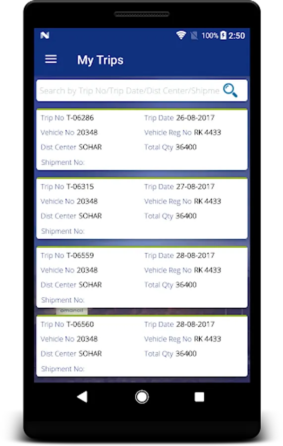 On logging in the mobile application the driver lands in the “My Trips screen”. The “My Trips” will contain the summary of Open(loaded) trips allocated to the logged in driver.