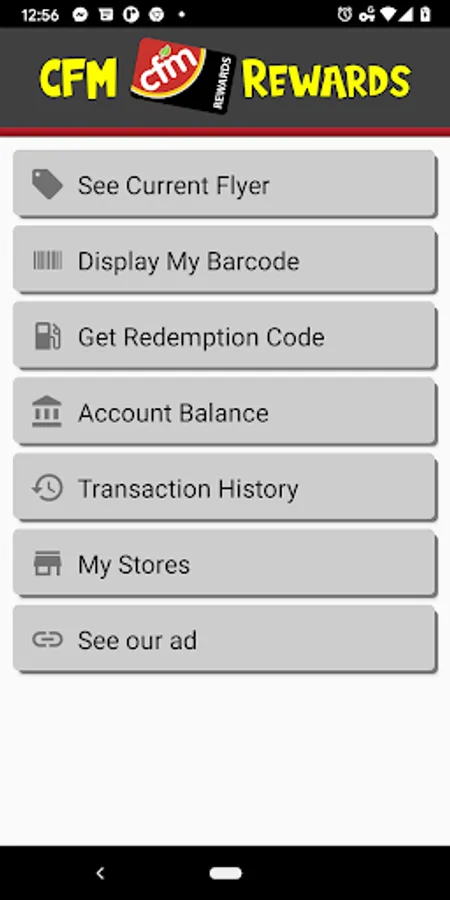 CFM Rewards is an extension of your CFM Rewards card. Just sign on once using your card information and use the app to check your balance, display your barcode for a scanner, authorize fuel dispensers at any CFM location, get your transaction history, and get directions to any of our stores.