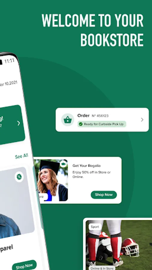 • In-App Purchasing - Shop Online for textbooks, spirit gear, school supplies, gifts, accessories, and more. Is your book not on the shelf? Use our app to scan the barcode and order from your phone.