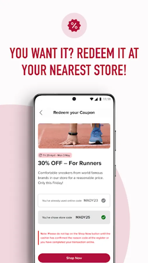 • Store Event Notifications - Turn on notifications and you’ll be the first to know about special events and sales happening in your store.