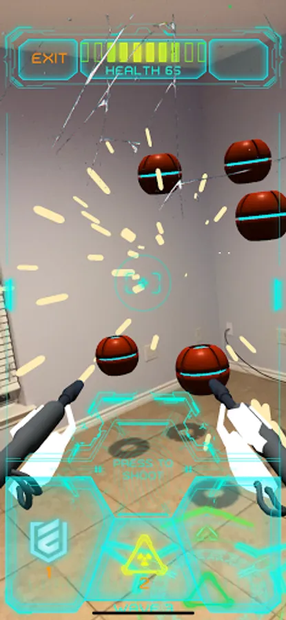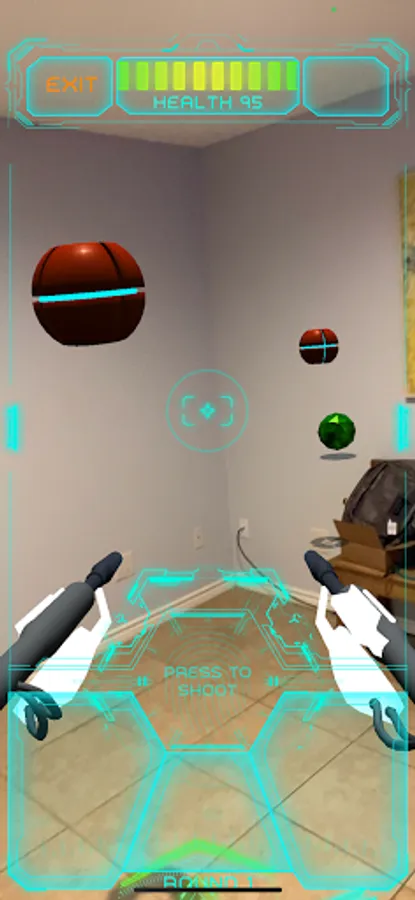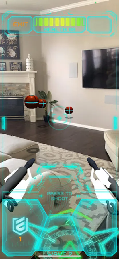 Maintain a defensive position against never-ending waves of enemies in augmented reality. See how long you can stay alive to kill as many enemies as possible in this simple 3D shooter. Each level gets faster and more difficult. Shoot the enemy, gain health and powerups. Be quick and accurate!