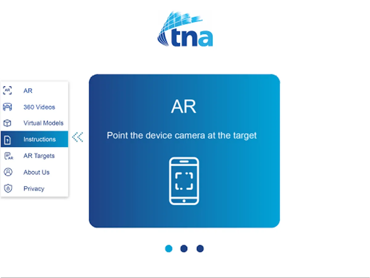 This app shows augmented reality (AR) in action; it recognizes specific images, knows as targets, and correctly places interactive digital content in your environment. To enable the AR experiences, follow the instructions on the screen. For the image targets, locate them in tna related marketing material or use the images that can be found at: https://www.fuelfx.com/appdownloads/TNA/artargets/index.html