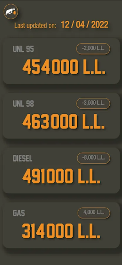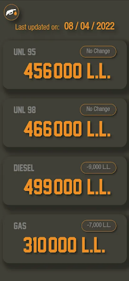 A very simple application showing current Fuel Prices in Lebanon updated based on prices change.