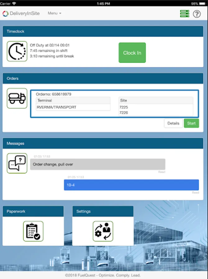 Insite360 Deliver offers innovative, scalable cloud-based fuel logistics solutions that streamline fuel distribution. Fuel retailers, wholesalers and haulers gain real-time visibility and paperless control of their fuel buying, dispatching and reconciliation on any device - desktop, laptop, tablet or phone.