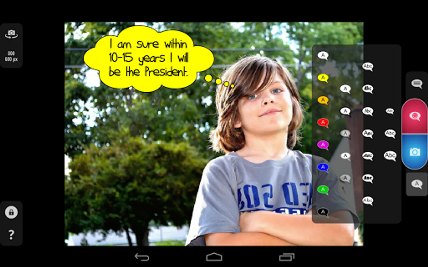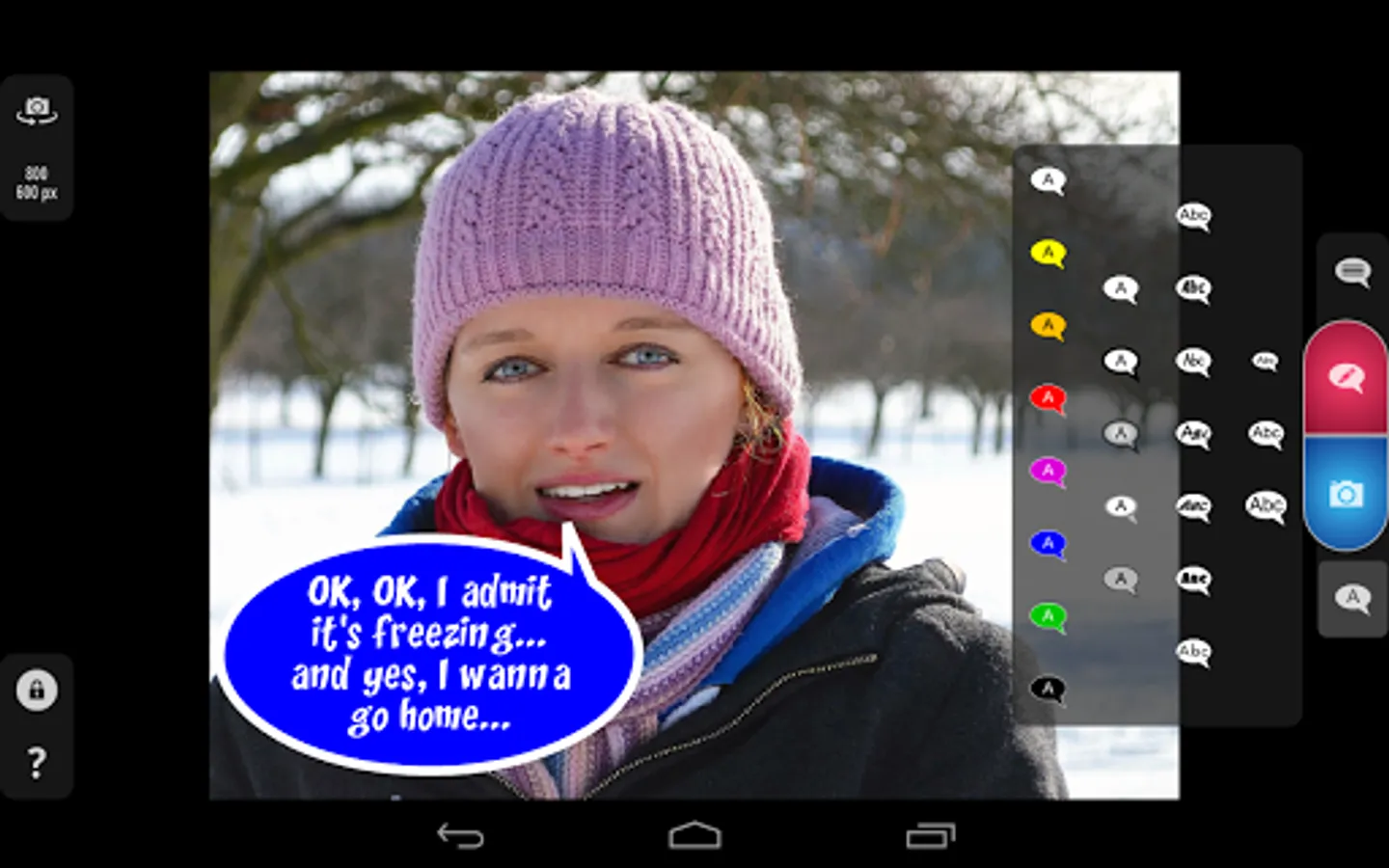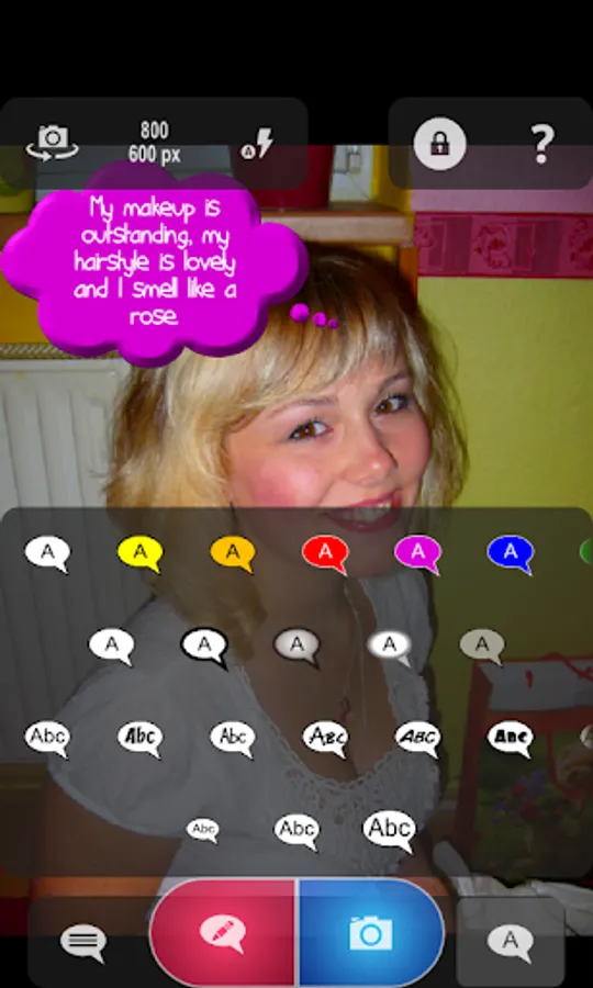 Live face-tracking: just point the camera at your's or friend's face and a speech bubble pops-up. Press the capture button and there you have a nice talking photo.