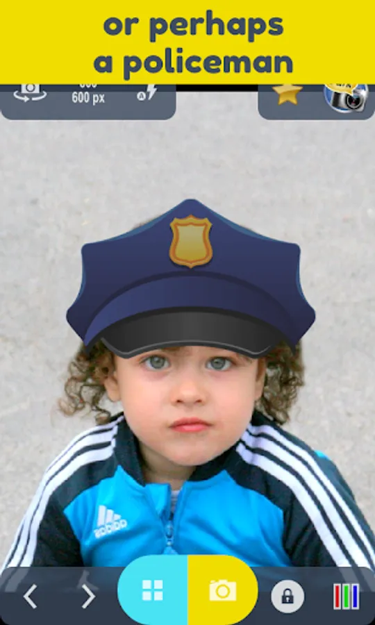 With this funny app children can try-on many typical professions live in real-time. The app acts like a mirror - you (or a child) look into the front camera or point the rear camera at somebody and a profession type pops-up and follows the face.