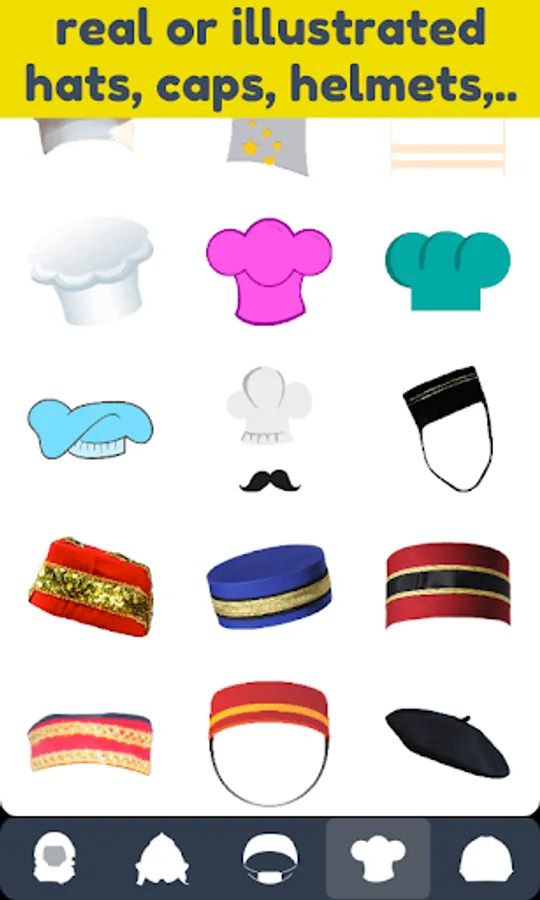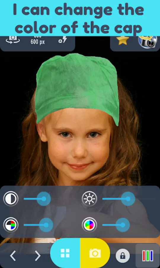 You can adapt the color of the hat to some degree. Also you can change the brightness, hue and saturation. Resize and move it around with your fingers.