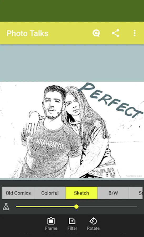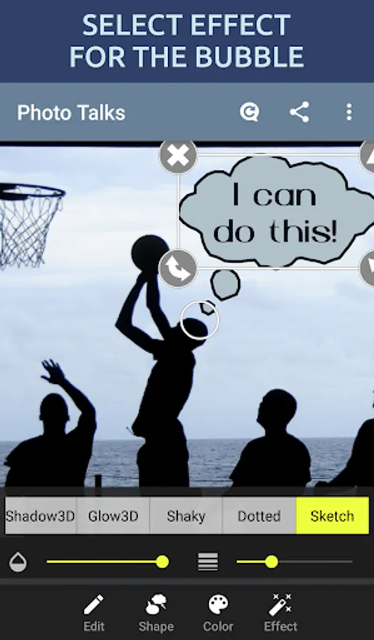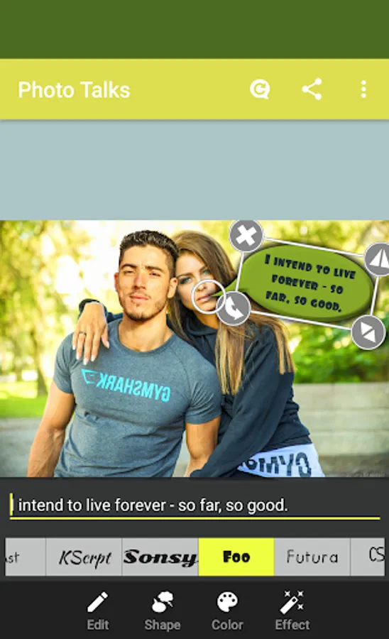 Photo talks detects people's faces on a photo and automatically generates speech bubbles with text for the detected people. You can also manually add, edit, delete or rotate bubbles.