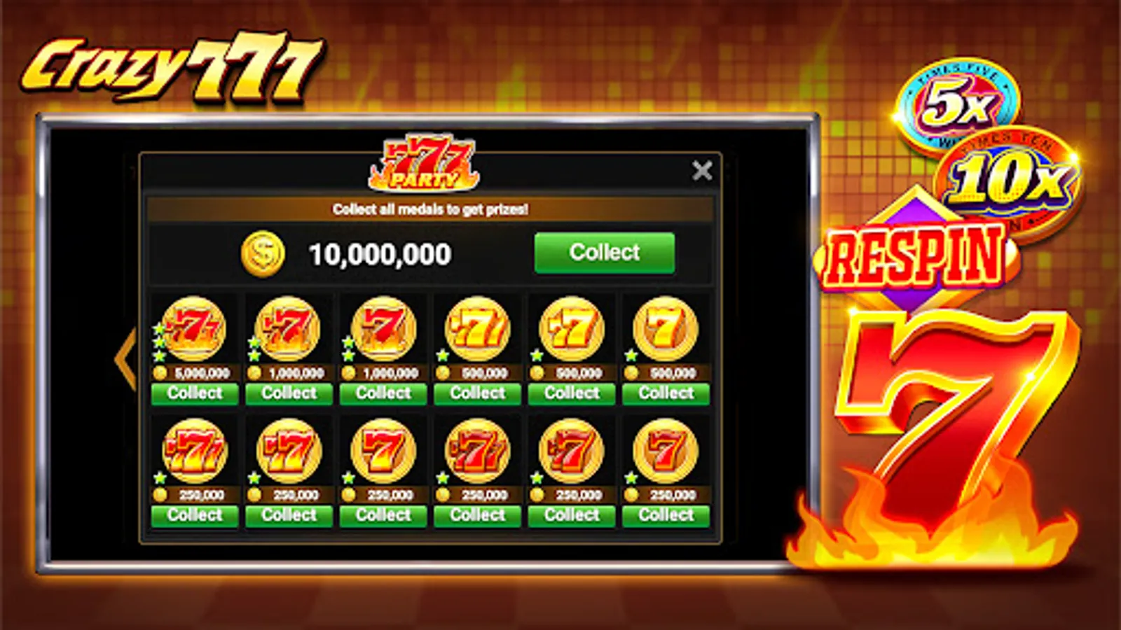 5. Collect the medals while spinning in any games and get HUUUGE PRIZES!