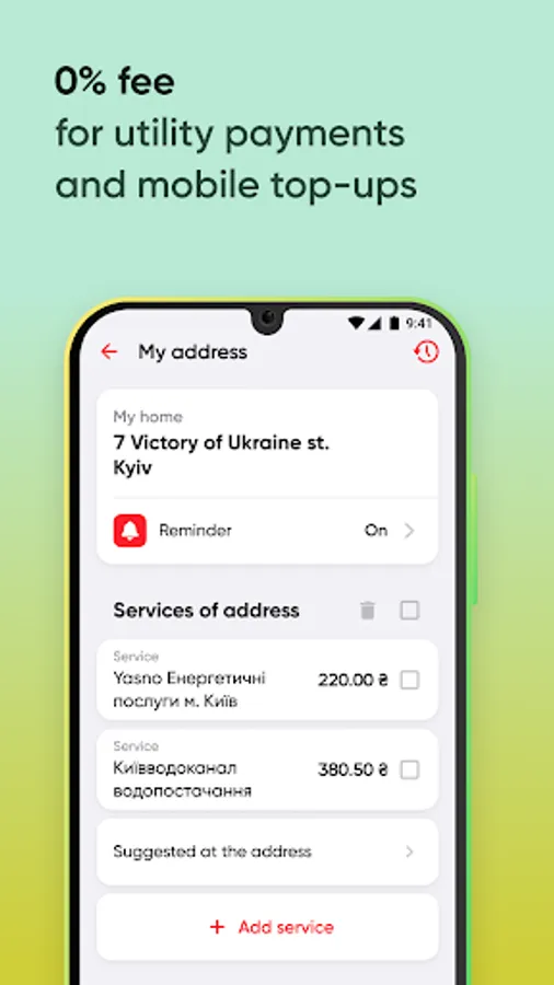 - pay for any other services (Internet, TV, etc. or by IBAN details)