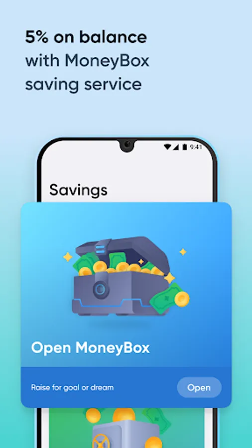 - collect money not in the bank but in MoneyBox – and get 5% per annum on the balance