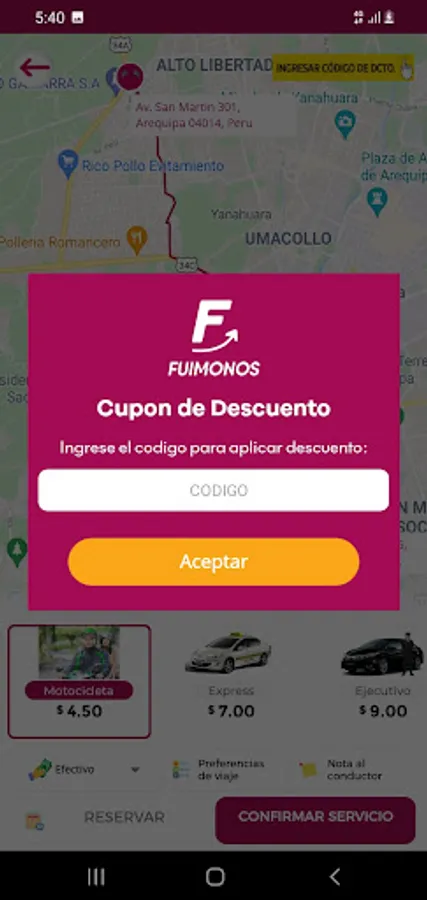 Download, register and request a Fuimonos driver at the touch of a button. Easily pay with cash, 24 hours a day, 7 days a week, with no hidden fees.