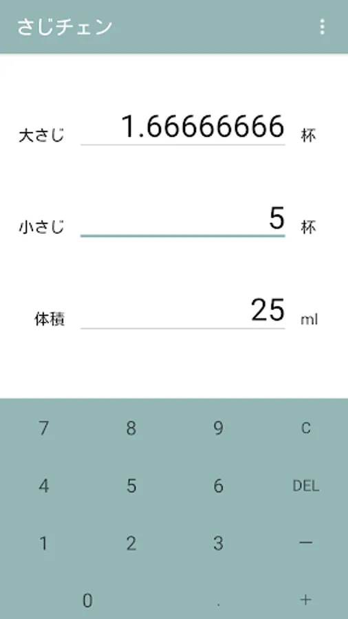 If you enter a number in "Tbsp", you can see "Tsp" and "Volume".