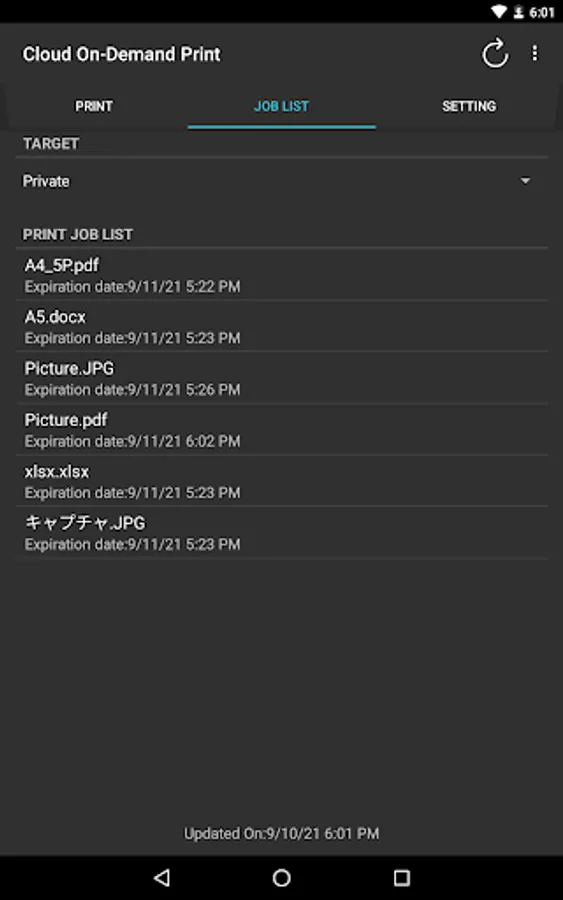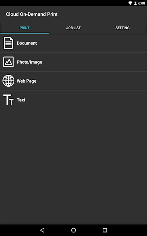 Print documents (PDF, XDW, XPS, MS Office are supported) and image files (JPEG, PNG) through inter-app communication.