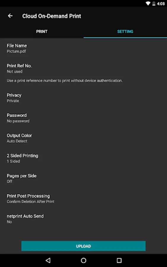 Share uploaded documents for printing.