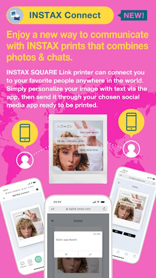 The SQUARE Link printer keeps you connected, no matter how far apart you are. Simply personalize an image with text via the SQUARE LINK app, then send it via your favored social media app, ready to be opened, printed, and treasured.
