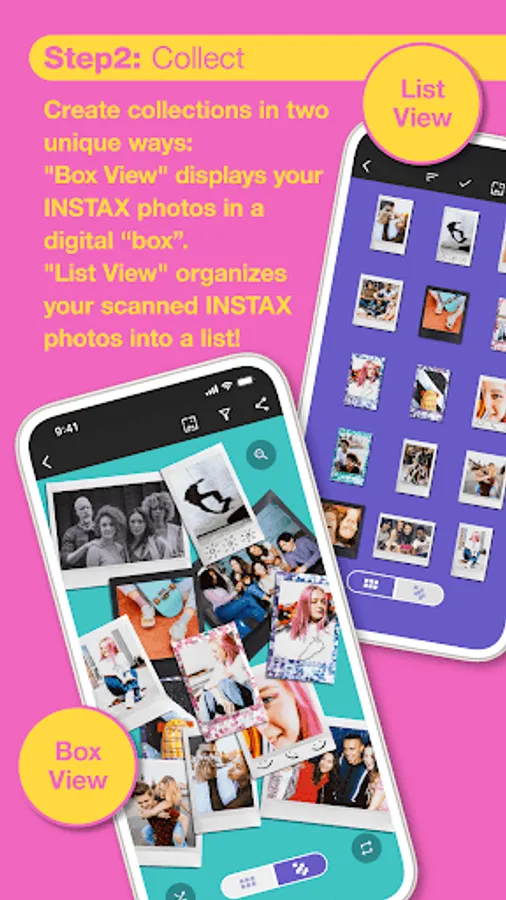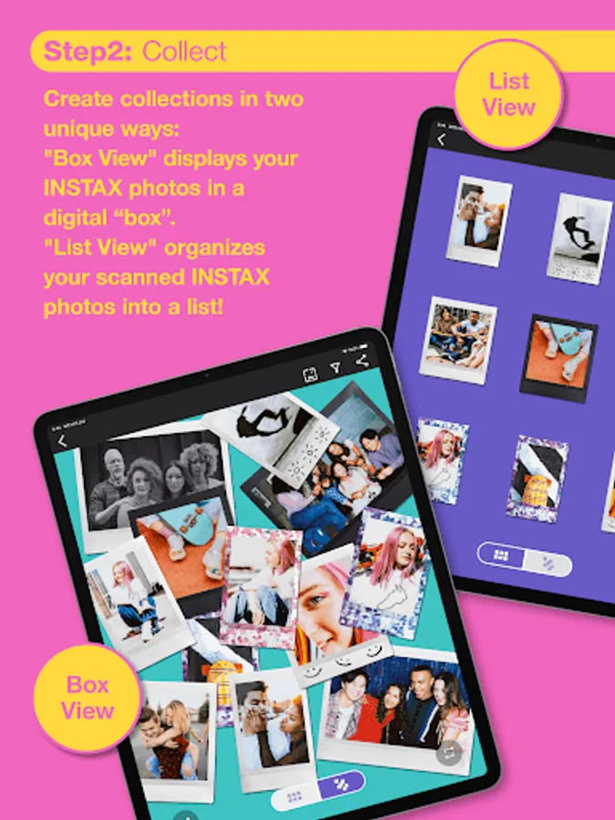 Create your collection & view it within the INSTAX UP! App in two unique ways...