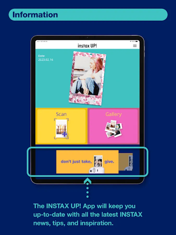 The INSTAX UP! App will keep you up-to-date with all INSTAX product information.
