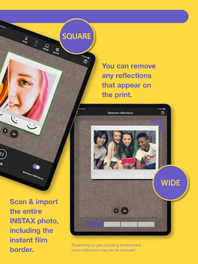 The INSTAX UP! Smartphone App allows you to scan your INSTAX photos that have been printed with a FUJIFILM INSTAX instant camera or Smartphone printer and store them digitally.