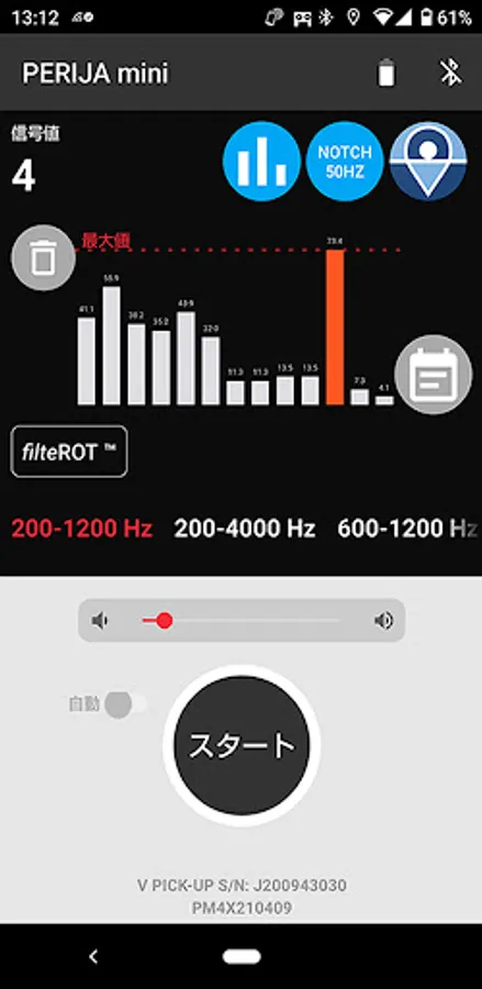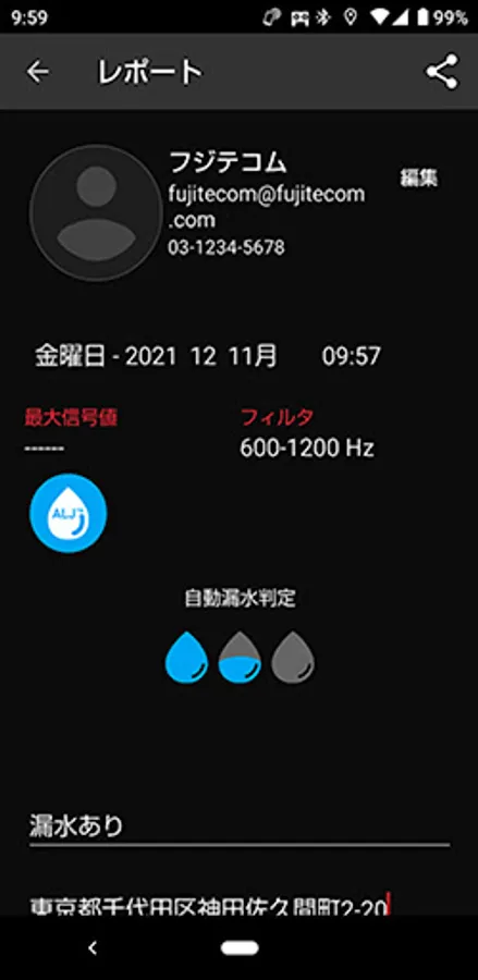 This is an application for Perugia Mini sold by Fujitecom Co., Ltd. The abnormal sound acquired from the Perugia Mini main unit is analyzed by this application, and the water leakage judgment result is displayed. You can also set filters and create reports when listening to sounds.