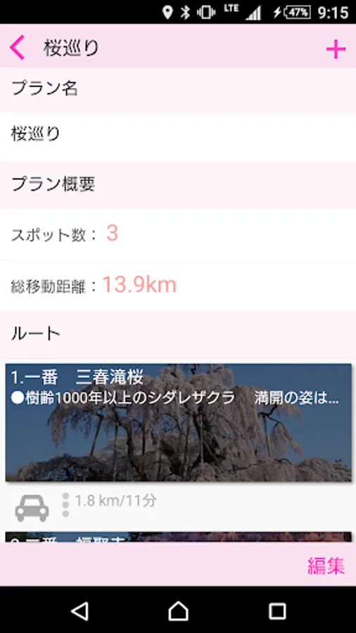 From the tourist spot that has been registered, when you select a spot, such as cherry blossoms and the wine cellar you want to go, the original route will be created over all the spots you have selected. After that just enjoy the journey along the route!
