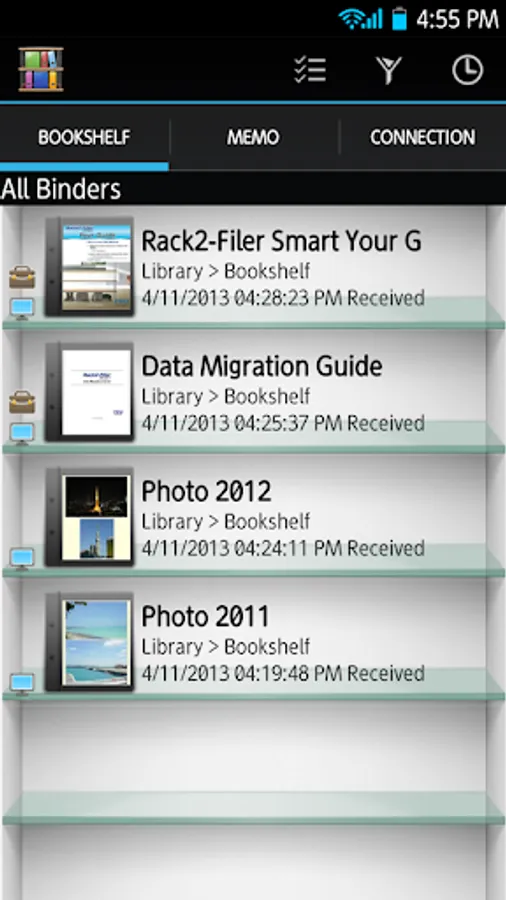 This application allows you to view binder data on your mobile device that is created with Rack2-Filer Smart on your computer.