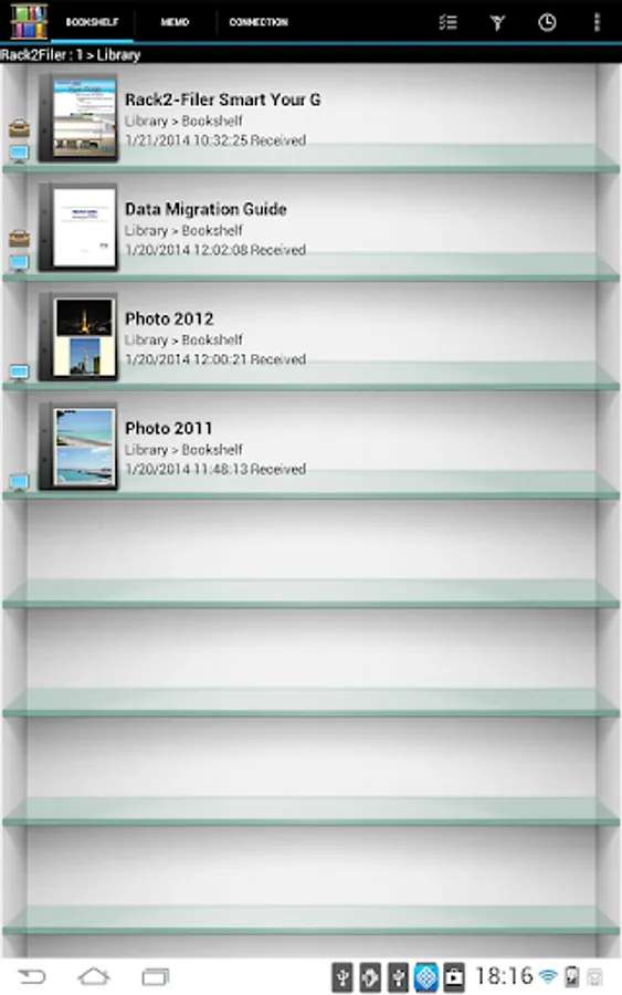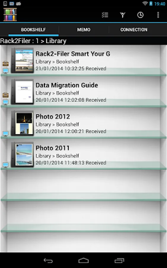 - Import binder data that is created with Rack2-Filer Smart from your computer and view this data on your mobile device.