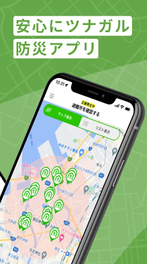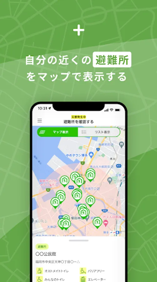 In addition to displaying a list of nearby shelters on a map in the event of a disaster, this is a smartphone app that allows you to share information within the shelter. It is Fukuoka City and Tsunagaru app, such as obtaining information on evacuation centers and relief supplies.
