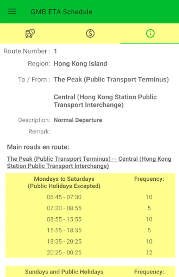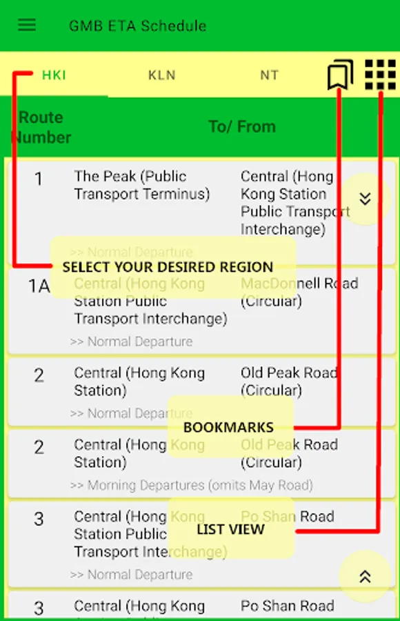 The mobile app (GMB ETA Schedules) provides the real-time 🕘 arrival information, 💵 bus fares and 📅 schedules of the 🚌 Green Minibus(GMBs) running in Hong Kong Island(HKI), Kowloon(KLN) and New Territories(NT) areas.