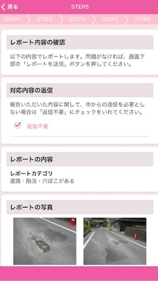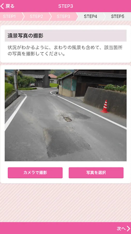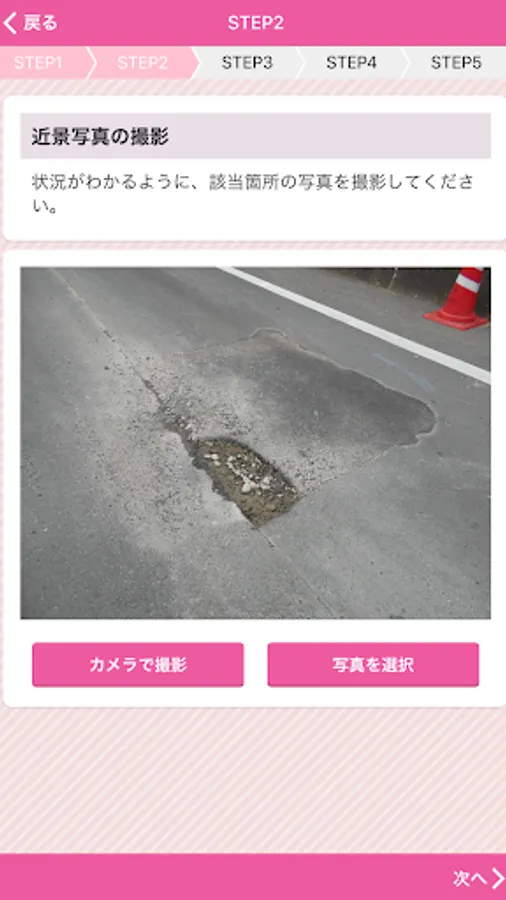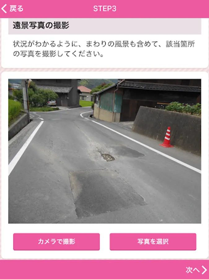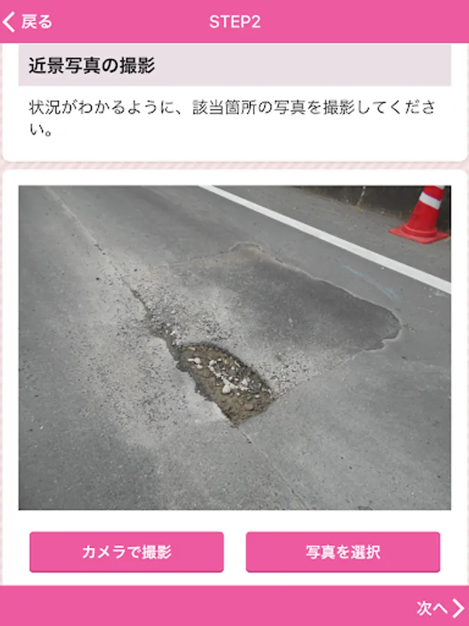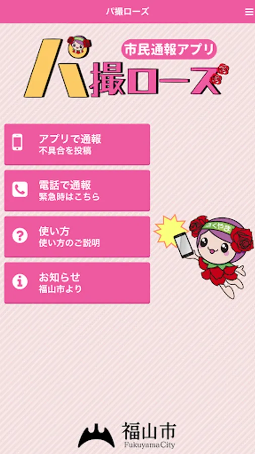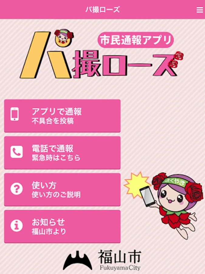 The damage location, etc. of the road that Fukuyama is managed, is an application that can report along with the photo.